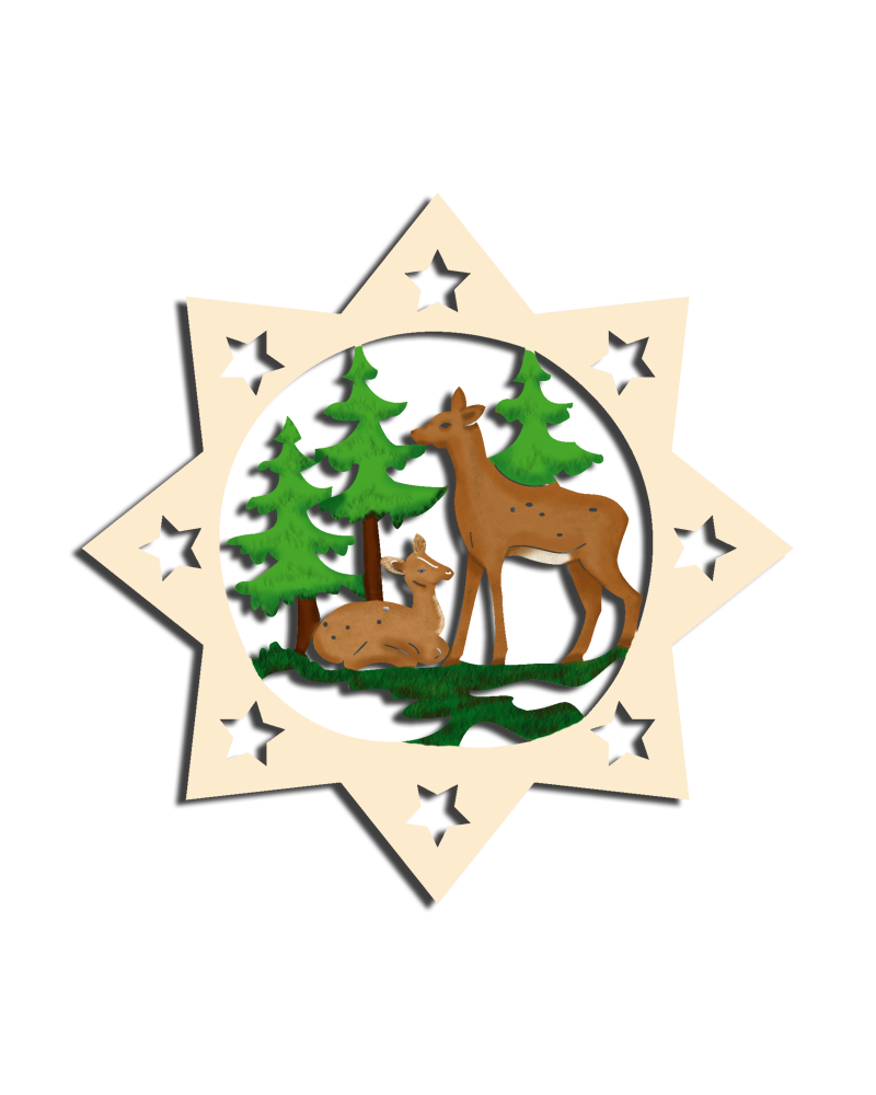 Holzbehang Motiv „Rehgruppe“ Farben: bemalt oder natur