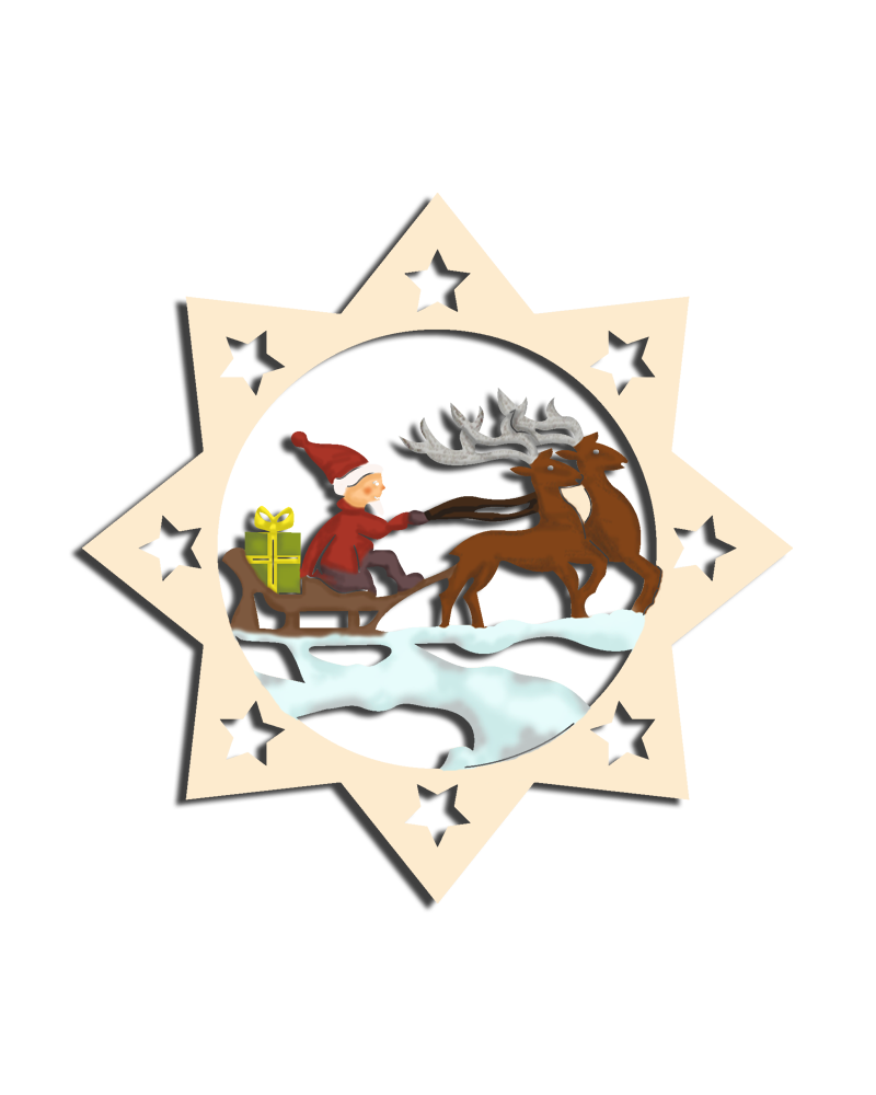 Holzbehang Motiv „Weihnachtsmann-mit-Schlitten“