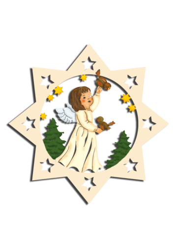 • Fensterbild beleuchtet "Engel mit Vögelchen"